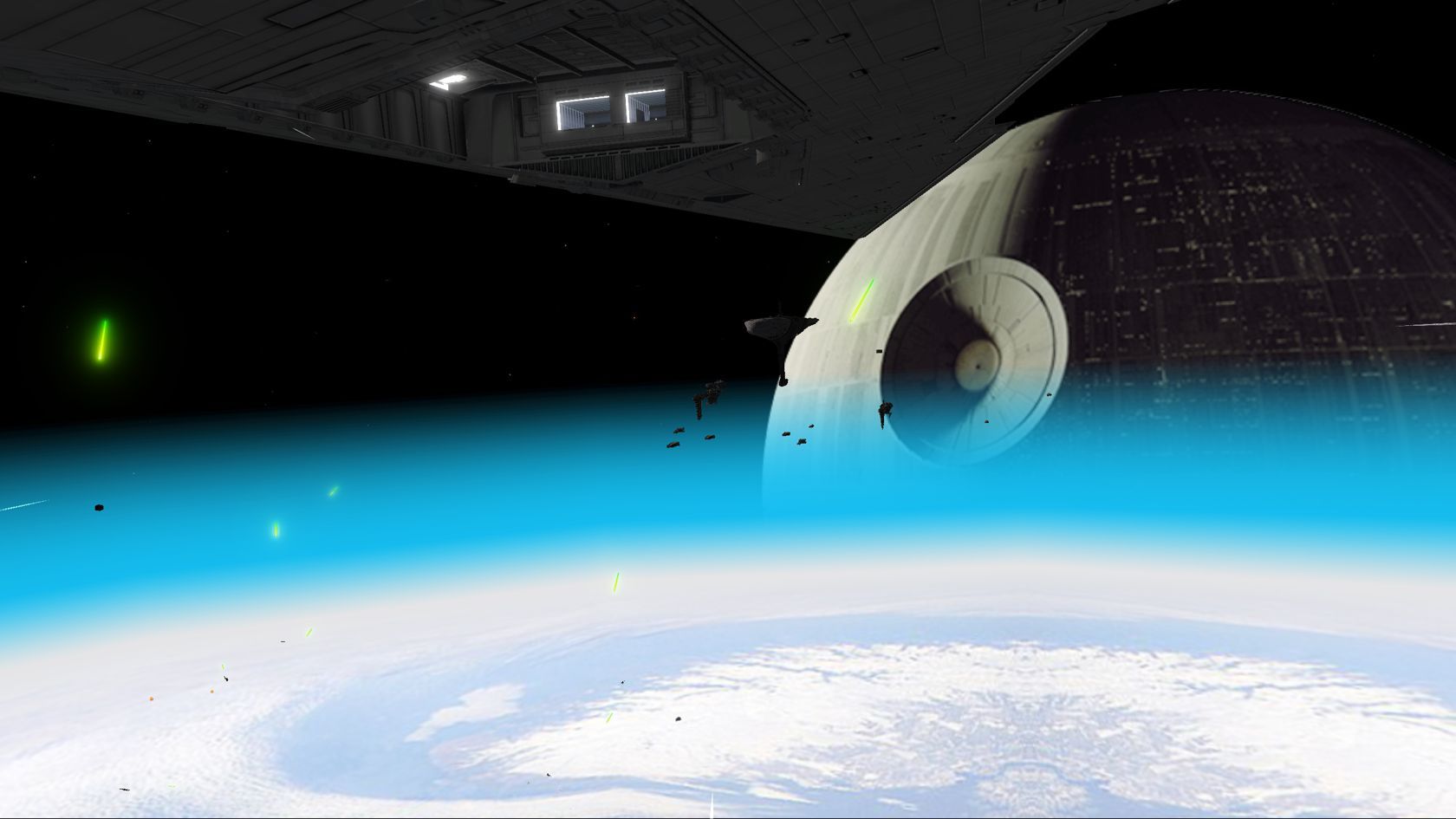 The shipset will depict the Space Battle over Scarif from the movie Rogue One. Using DTM's Super Backdrop I was able to pretty much recreate the scenery fairly easy - including the Death Star looming at the horizon.