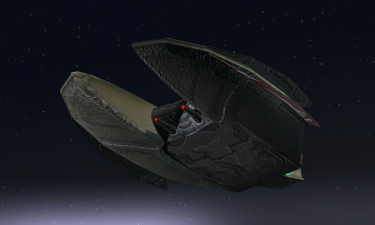 I am also considering to make a HD remake, which however is way down my priority list. Such a remake might also include a cockpit OPT, a basic model for which I have laying around since maybe 2004. One other thing I'm considering for all Dhilani ships is to move away from those leathery/scaley looking hull textures and instead go for something that still looks alien but does make sense as a starship hull. After all the Dhilani are anything but mindless primitive brutes and their ship design should reflact that.