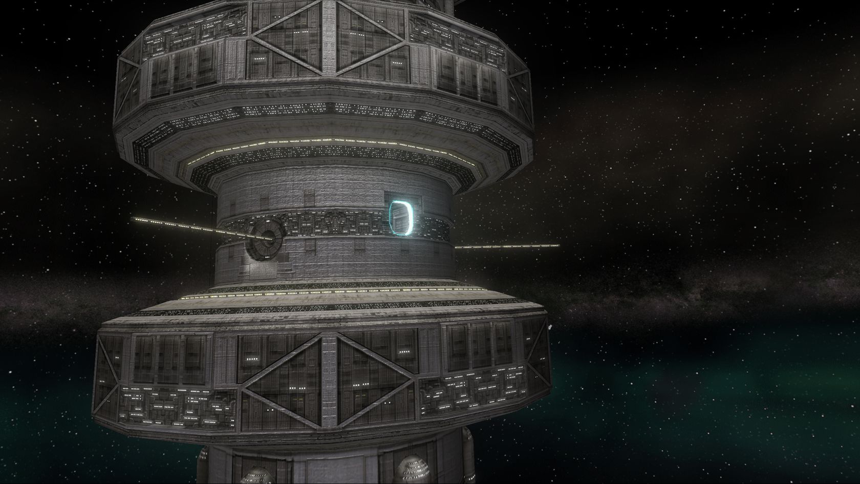 The Space Colony 3 was the second Station I crated for the XWA Upgrade Project. For gameplay and compability reasons I have roughly doubled the station's size from the original model in order to allow size-corrected ships like the upgraded Shuttle to pass throgugh the hangar. It also creates a better feeling of scale and allows you to do some nice flythroughs.