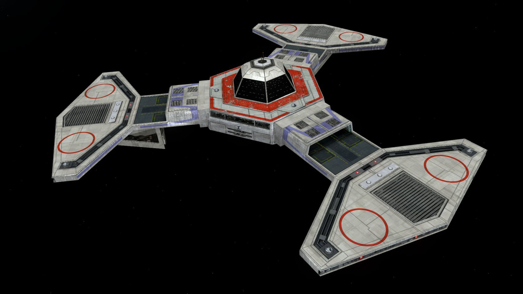 The XWAU version of this stations comes with the 4 standard FG colors red, gold, blue and green as well as a bonus FG depicting the look and markings of the older PLT1 from 1998's TIE Fighter Collectors' CD, complete with the designation D-34, an hommage to the famed Outpost D-34 which stared prominently in the earlier stages of that game.