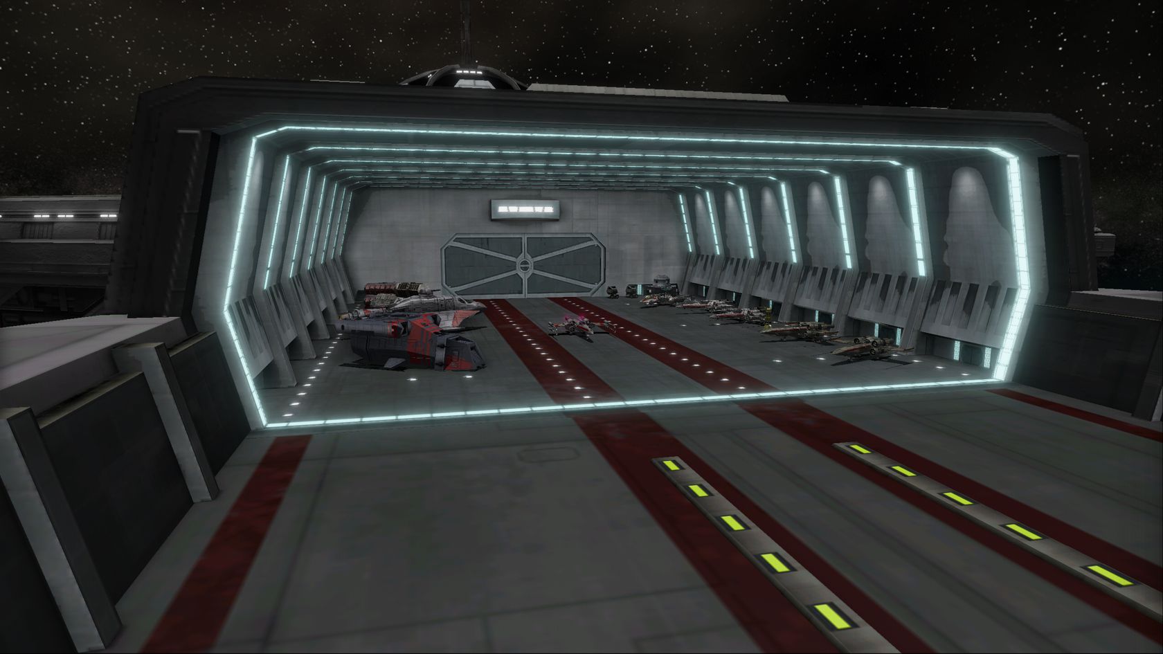 The platform includes a custom hangar OPT. Thanks to Ace Antilles this hangar has 3 different Setups depending on the station's IFF in custom missions: Rebel, Imperial, Neutral.