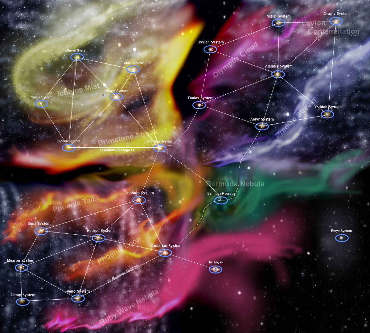 So while I'm in the process of turning everything upside down and inside out anyway, I'm fixing this as well. There will still be some localized phenomena, localized pockets of gass, where the story requires them to be, but for the rest, I'm reorganizing them into sectors containing several star systems (yeah I'm taking inspiration from Mass Effect here, sue me!)