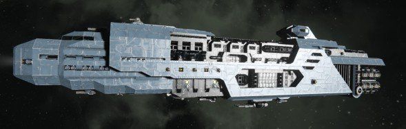 A pair of hangar bays offers space for fighters, shuttles or supply craft.