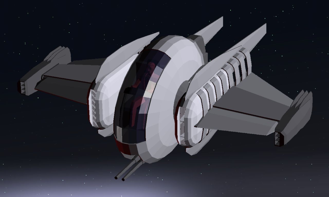 I original designed this ship to be tiny, more of a speeder than a starfighter. If this is to work ingame, tho, I think I may need to make this ship a little bigger or its small frame will be a pain to hit in combat.