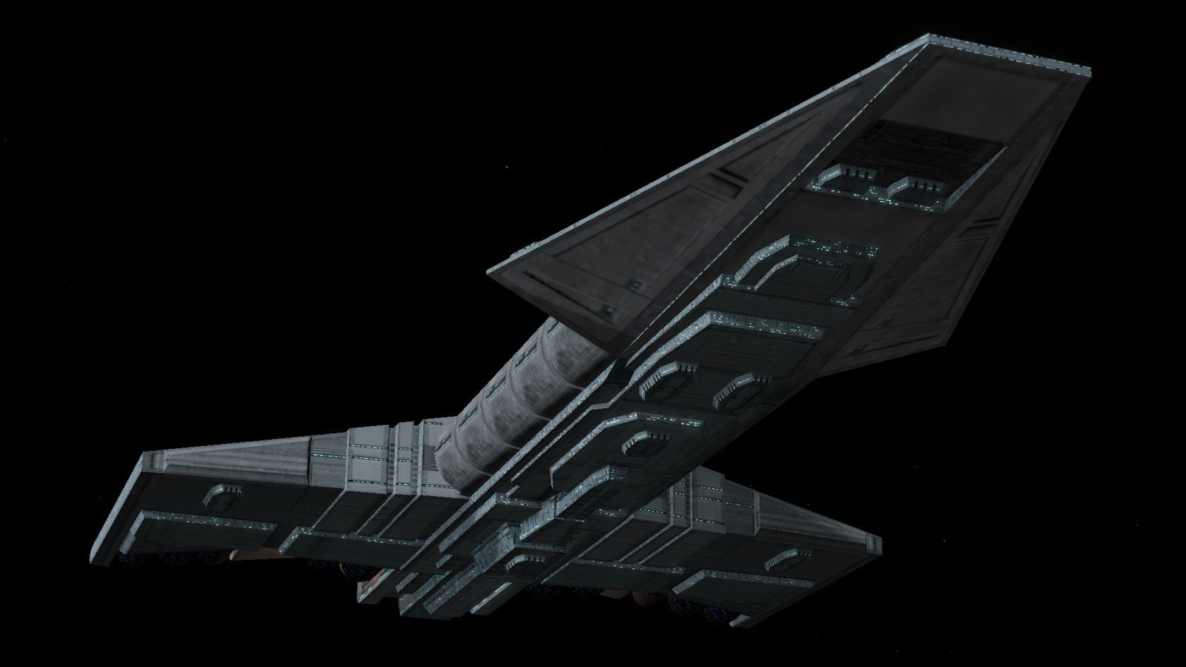 The Phoenix-class Cruiesrs's mid section houses a large hangar complex which can support up to 3 squadrons of starfighters.