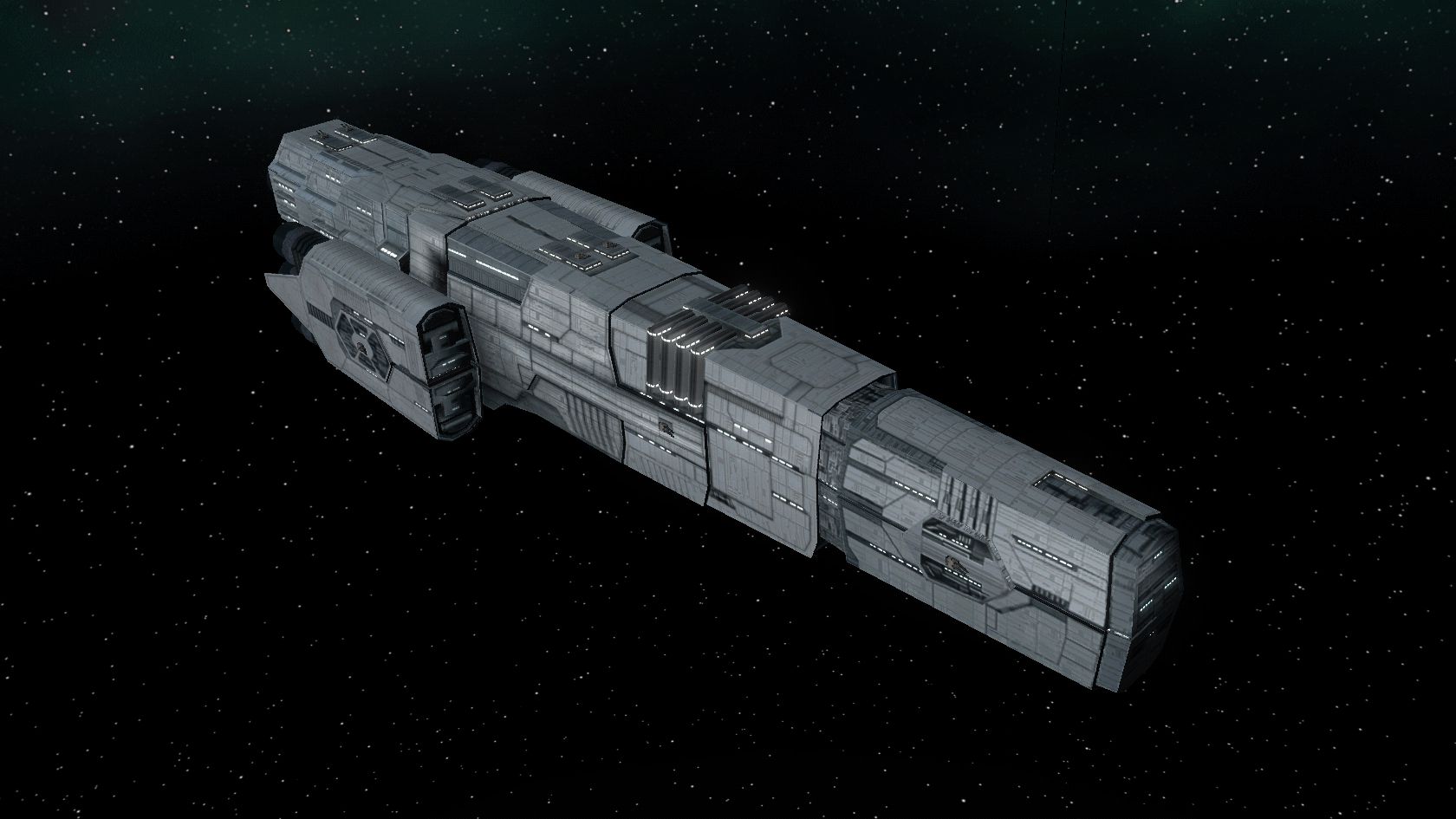 OK for this remake I'm going to further establish its role as a carrier rather than a battlecruiser/dreadnought, Reducing its firepower. Also, I'm taking cues from the textures to add a few more details, mainly highlighting the recessed windows and more exposed greeblies. The previous/current version had a lot of windows going along the thin edges covering the top and bottom of the main hull. I'm going to reduce or remove those windows and have them only along the sides and the recessed areas.