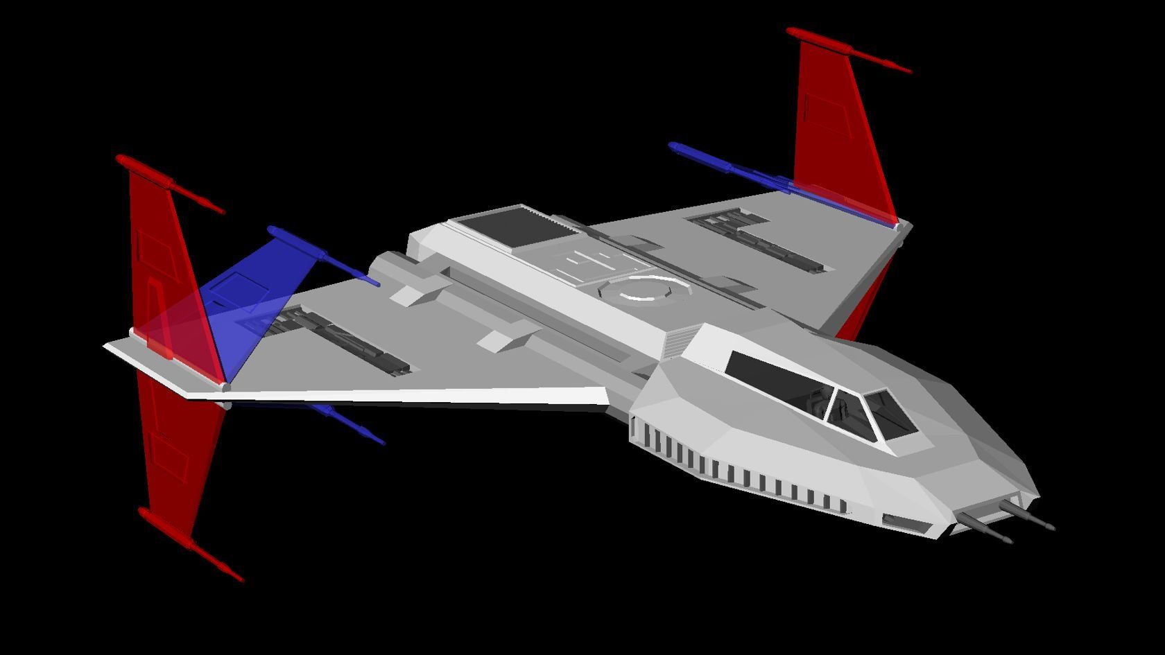 First: The fighter has one big logical issue: How do you land and board that thing? With those vertical wings, you'd need a fairly large ladder to actually get to the cockpit and the fighter would require a pretty long landing gear in order to not fall over. All in all I picture it looking pretty goofy. So, therefore what I'm going to do is make use of the S-Foils hook and turn those vertical wings into S-foils which would fold inwards to allow landing. While I'm at it, I may as well add retractable landing gears.