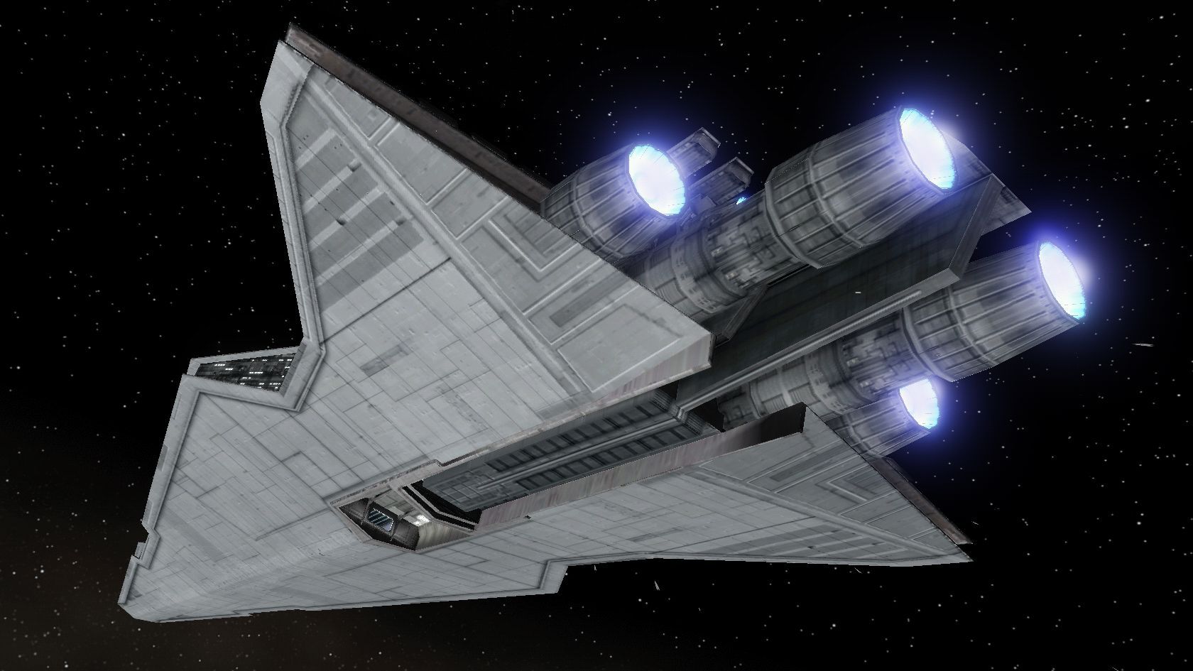 The forward half of the cruiser is basically one huge launch bay carrying countless ships from starfighters to assault gunships, which can be released almost simultaneously with the opening of the two massive blast gates on the ship's upper hull.