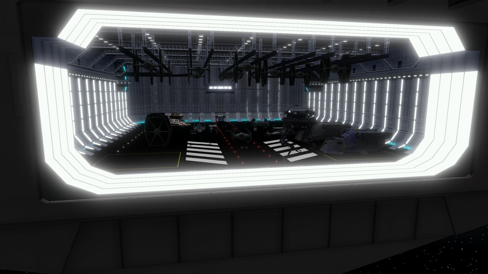 As of June 2022 I have completely redone the hangar model for VSD1 and 2. The new hangars are inspired by the upgraded ISD hangars. I have deliberately made them larger than life (Scale 1.5:1) for gameplay and accessibility reasons which generally allows for a less claustrophobic feel without being too ridiculously huge like my very first attempts on the Imperial hangar were.