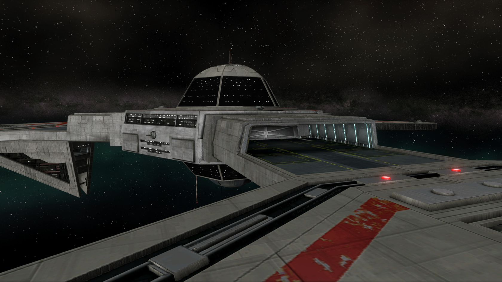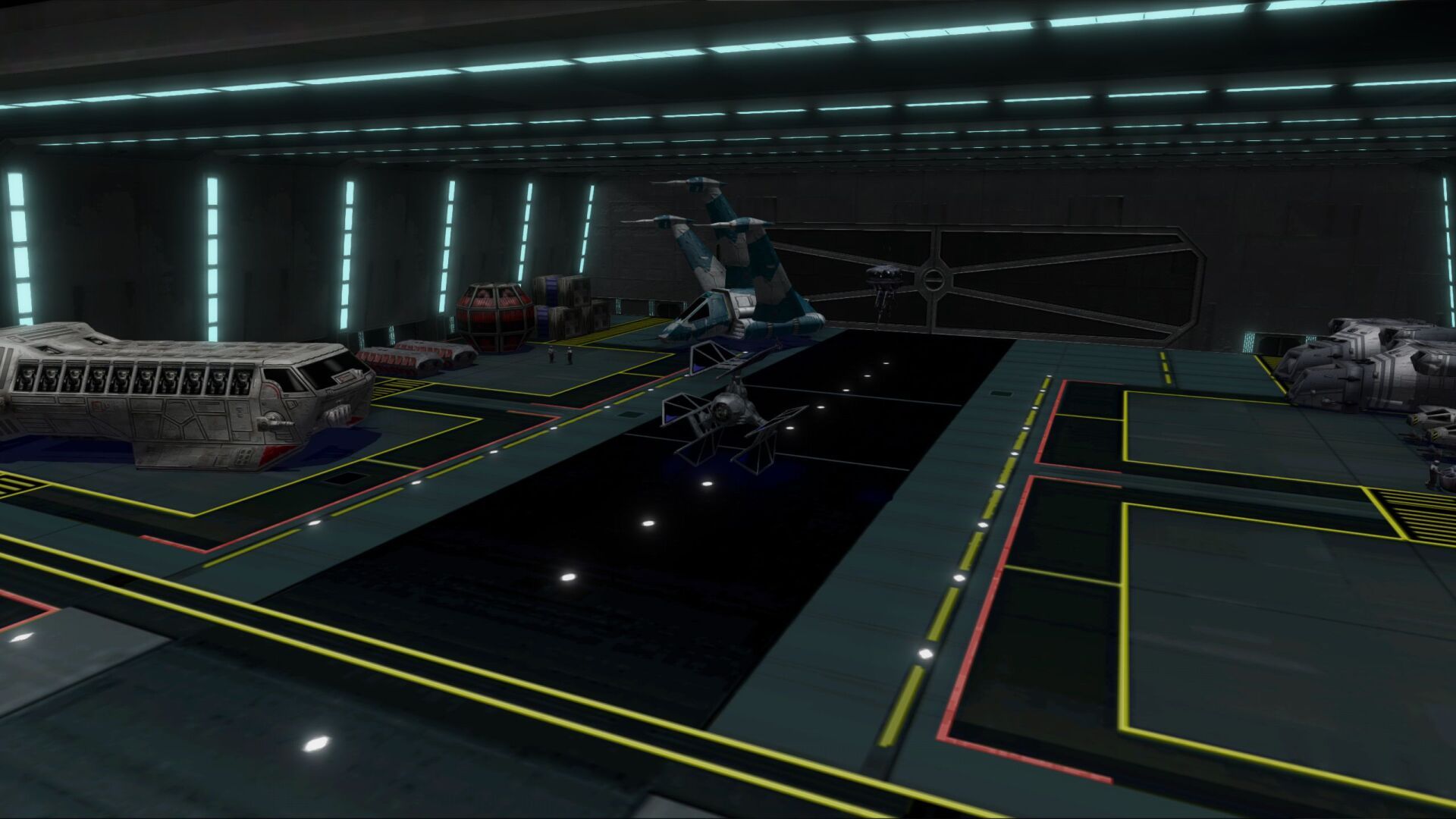 The platform includes a custom hangar OPT. Thanks to Ace Antilles this hangar has 3 different Setups depending on the station's IFF in custom missions: Rebel, Imperial, Neutral.