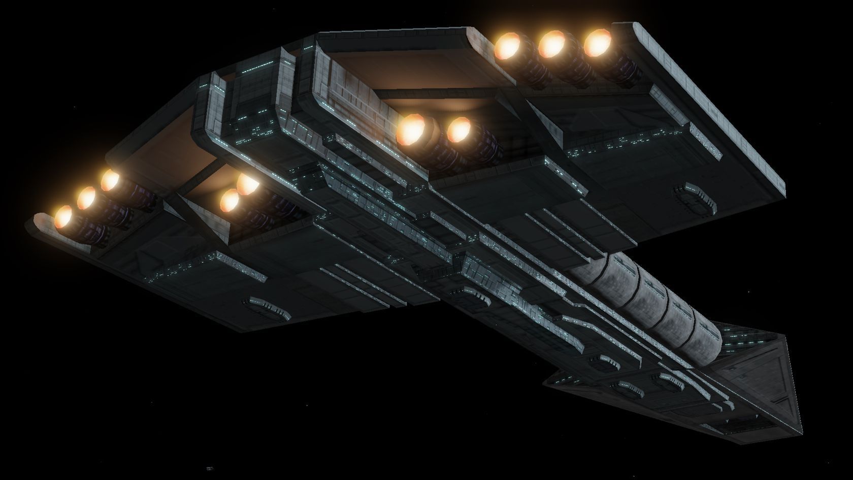 The Phoenix-class Cruiesrs's mid section houses a large hangar complex which can support up to 3 squadrons of starfighters.
